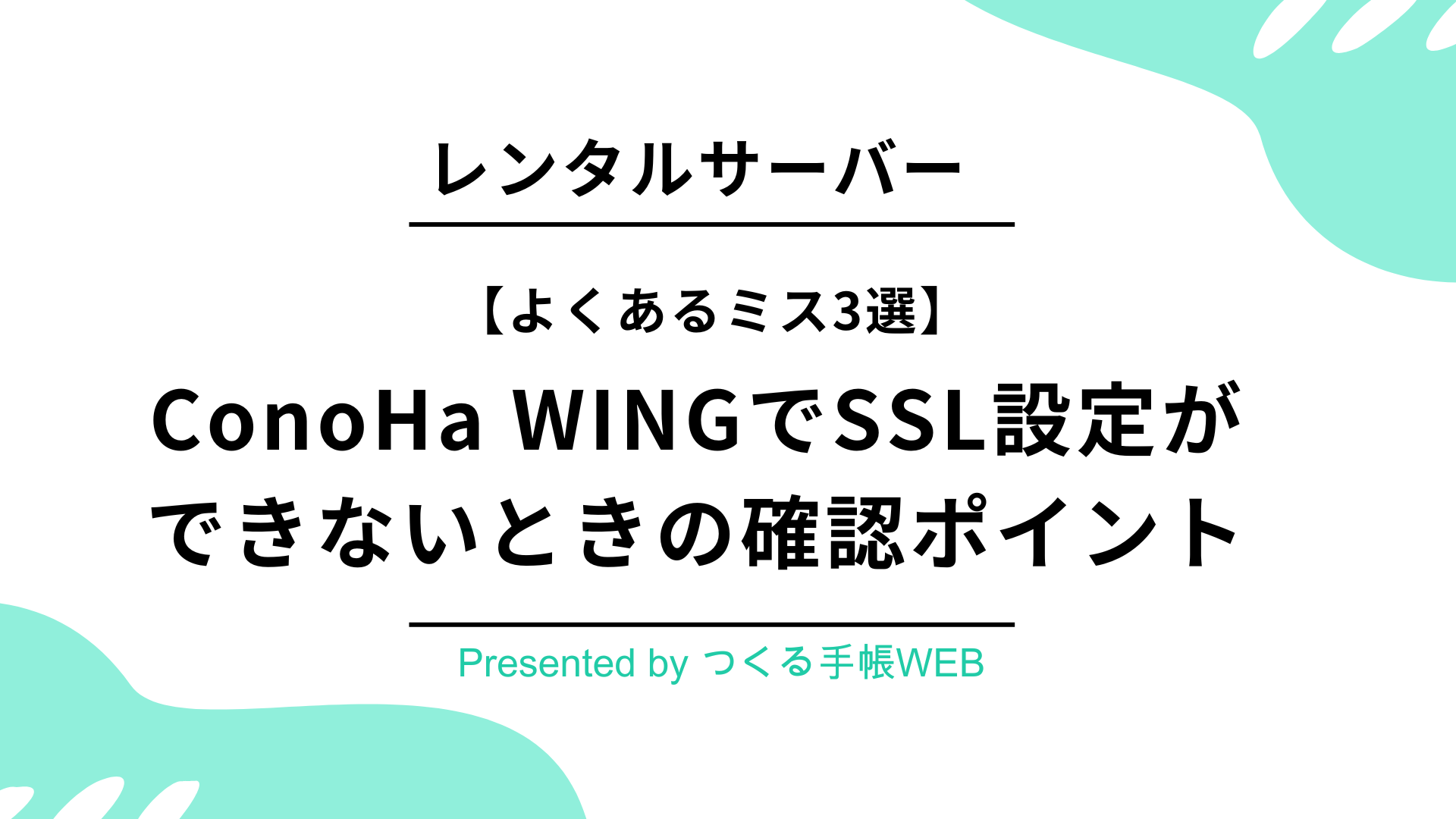 ConoHa WINGでSSL設定がうまくいかない原因は、ほぼ以下の3つです。
